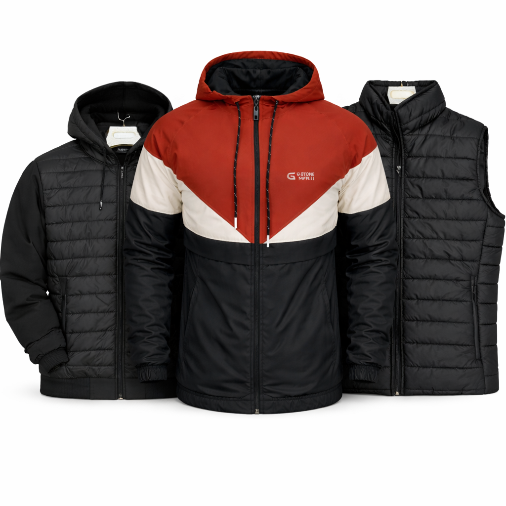 Veste Coupe-Vent à Capuche – Tricolore (Rouge/Blanc/Noir)